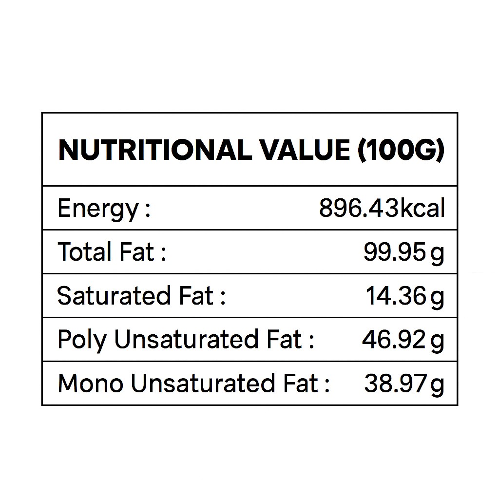 • Rich in healthy fats: Contains high levels of polyunsaturated and monounsaturated fats, which support heart health.